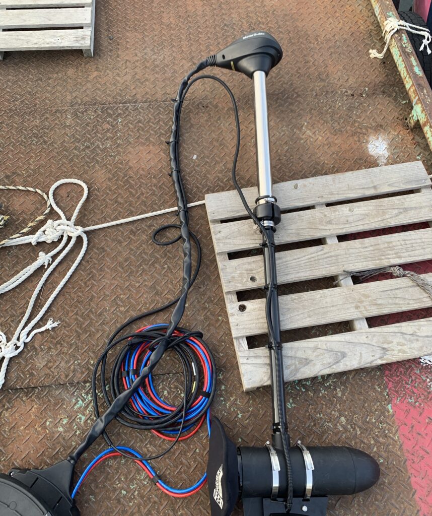 デメリット→エレキのノイズが魚探画面に干渉しやすい。ダウン、サイドスキャンはエレキの向きによって映像が乱れる。